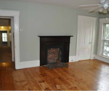 Wide pine board floors, an ornate fireplace, flooded with light ...
